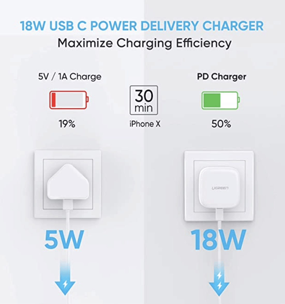 1 x TYPE C 9V 28W USB UK Charger